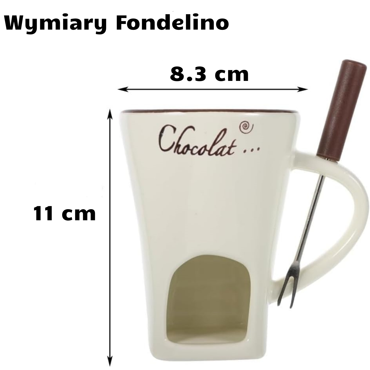 Kubek pomieści odpowiednią ilość czekolady dla 2–4 osób, czyli około 150–200 g. To idealna porcja na wspólne fondue podczas małego spotkania lub romantycznego wieczoru.